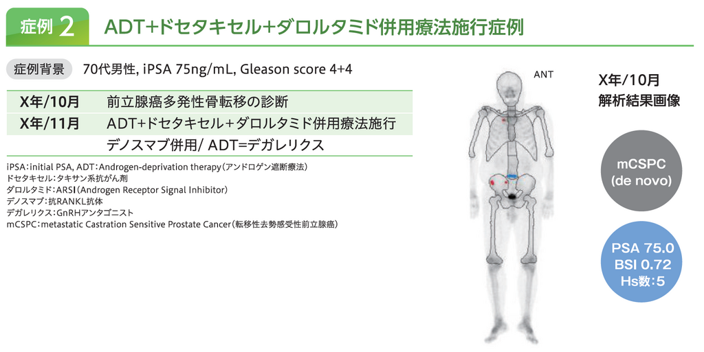 VSBONE BSIによるBSI評価は、前立腺がん骨転移に対して、紹介した症例における骨転移のfollow-upに有用であった。